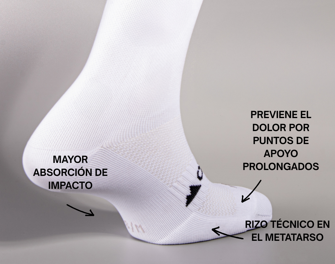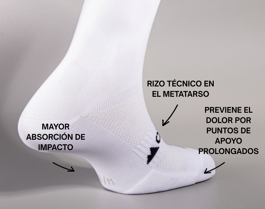 Cada calcetín de ciclismo CYCLED incorpora un rizo técnico en la zona del metatarso, una innovación textil diseñada para ofrecer amortiguación estratégica justo donde más se necesita.